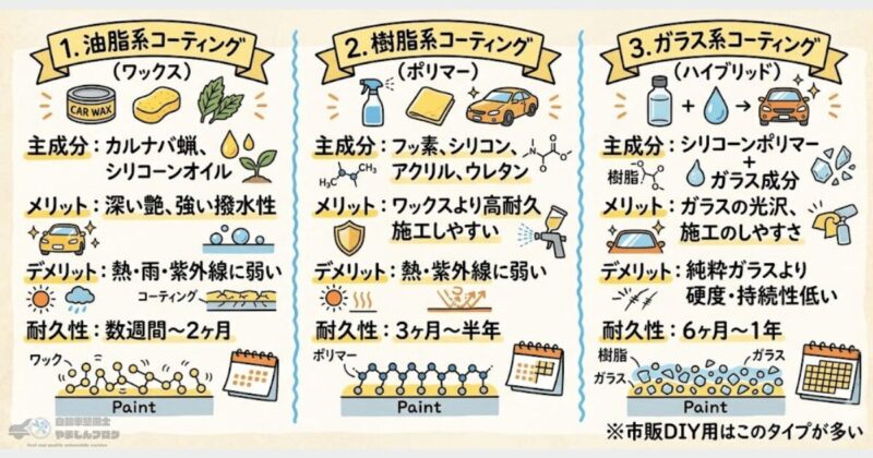 落ちるコーティング(ワックス、ポリマー、ガラス系の簡易コーティング)